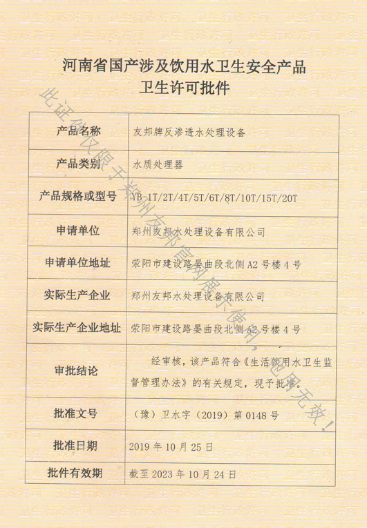 • 鄭州友邦水處理設備有限公司——營業執照
